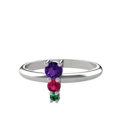 Ametist, rodolit garnet ve yeşil kuvars 8 ayar beyaz altın yüzük