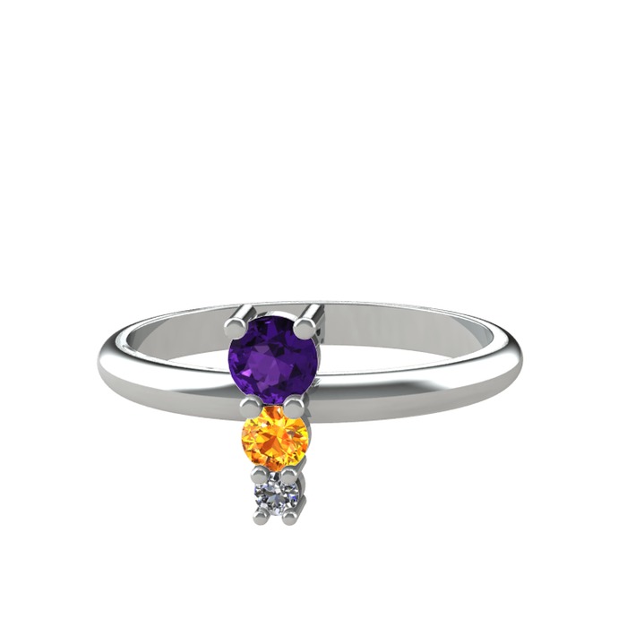Ametist, sitrin ve pırlanta 8 ayar beyaz altın yüzük (0.036 karat)