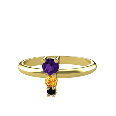 Ametist, sitrin ve siyah zirkon 8 ayar altın yüzük