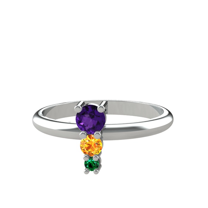 Ametist, sitrin ve yeşil kuvars 14 ayar beyaz altın yüzük