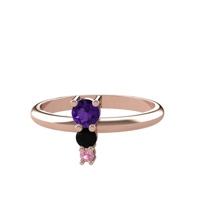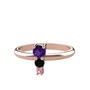 Ametist, siyah zirkon ve pembe kuvars 18 ayar rose altın yüzük