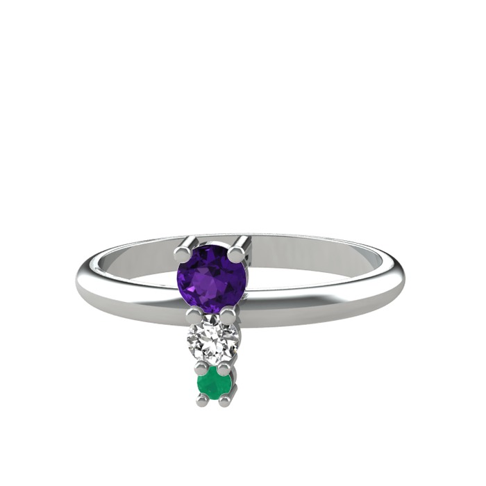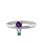 Ametist, swarovski ve kök zümrüt 14 ayar beyaz altın yüzük