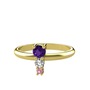 Ametist, swarovski ve pembe kuvars 925 ayar altın kaplama gümüş yüzük