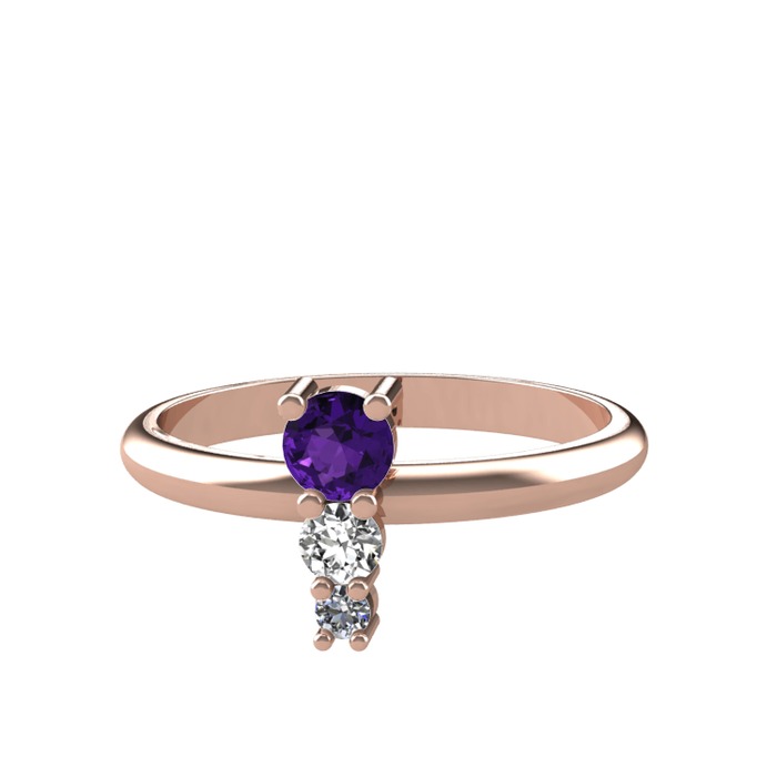 Ametist, swarovski ve pırlanta 14 ayar rose altın yüzük (0.036 karat)