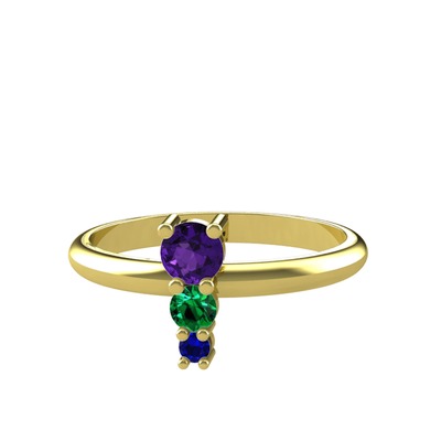 Ametist, yeşil kuvars ve lab safir 14 ayar altın yüzük