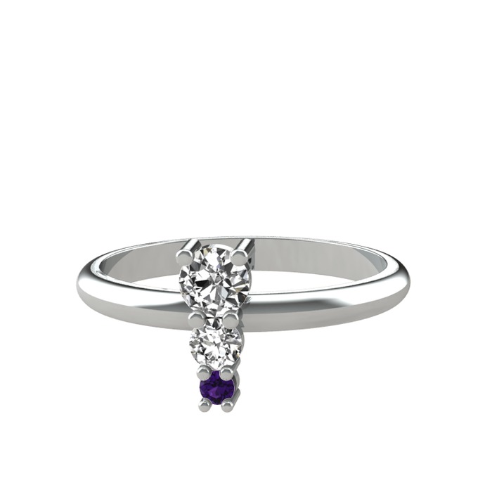 Beyaz zirkon ve ametist 8 ayar beyaz altın yüzük