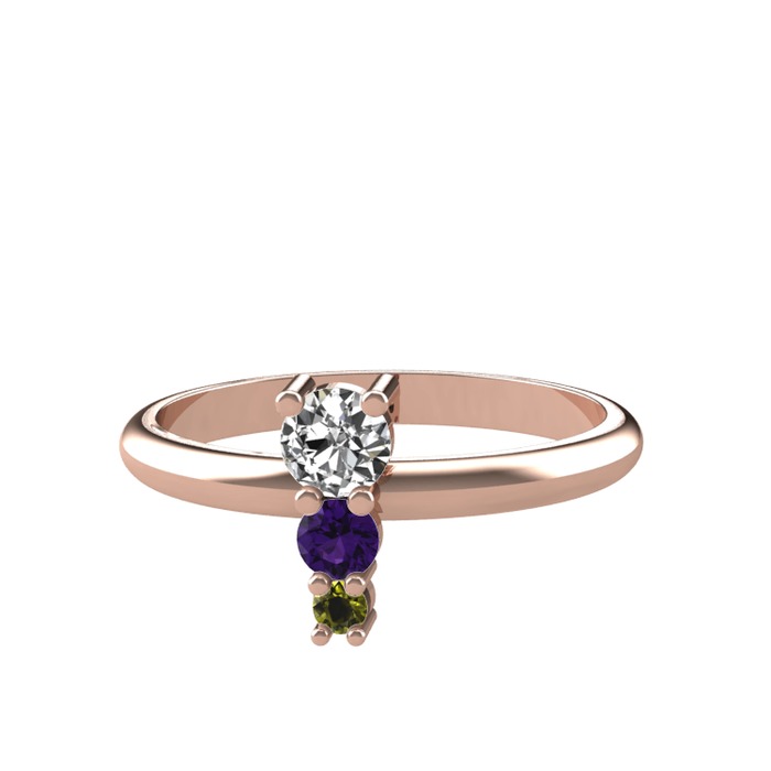 Beyaz zirkon, ametist ve peridot 18 ayar rose altın yüzük
