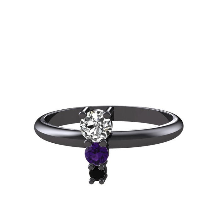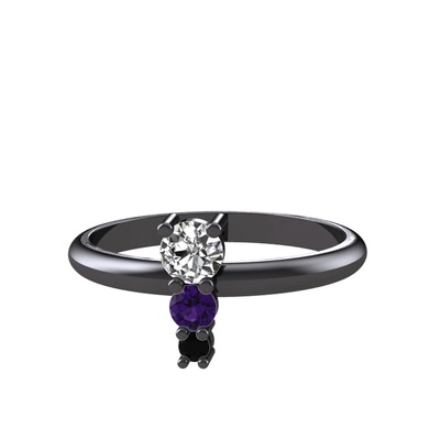 Beyaz zirkon, ametist ve siyah zirkon 925 ayar siyah rodyum kaplama gümüş yüzük