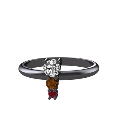 Beyaz zirkon, dumanlı kuvars ve kök yakut 925 ayar siyah rodyum kaplama gümüş yüzük