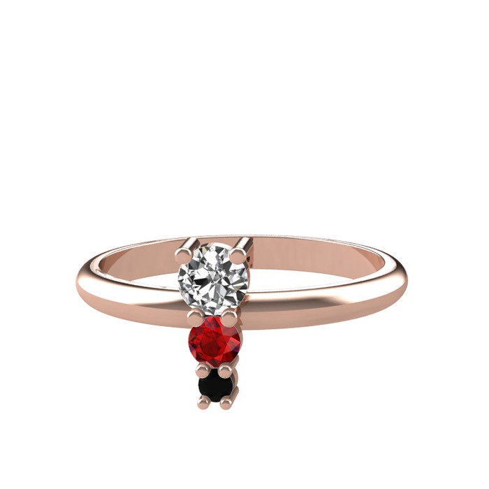 Beyaz zirkon, garnet ve siyah zirkon 14 ayar rose altın yüzük