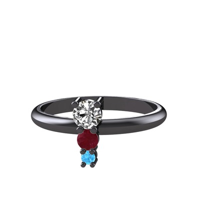 Beyaz zirkon, kök yakut ve akuamarin 925 ayar siyah rodyum kaplama gümüş yüzük