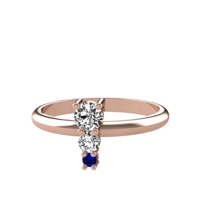 Beyaz zirkon ve lab safir 18 ayar rose altın yüzük