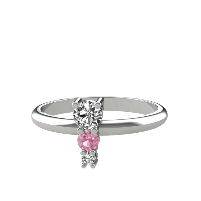 Beyaz zirkon ve pembe kuvars 8 ayar beyaz altın yüzük