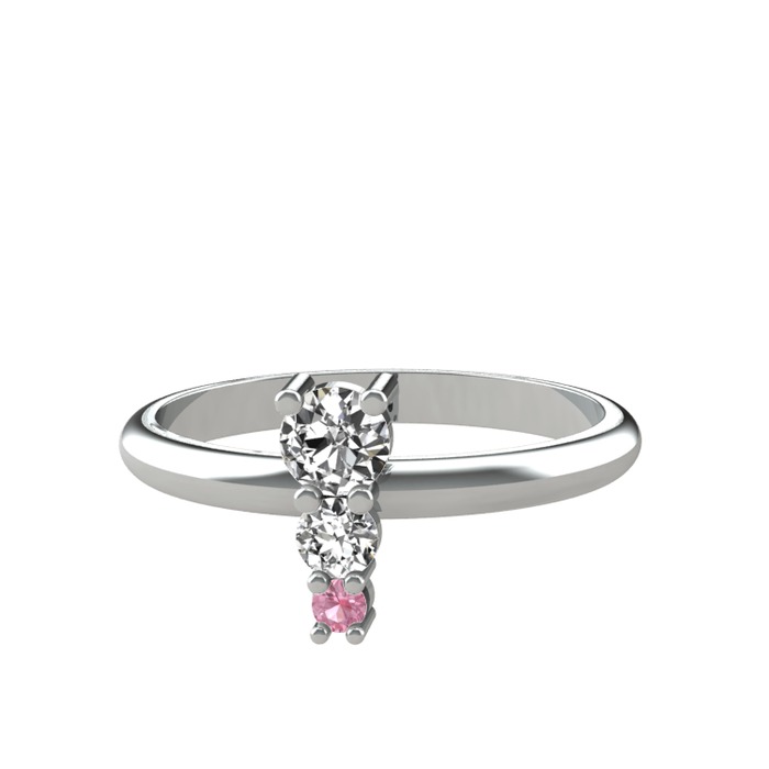 Beyaz zirkon ve pembe kuvars 8 ayar beyaz altın yüzük