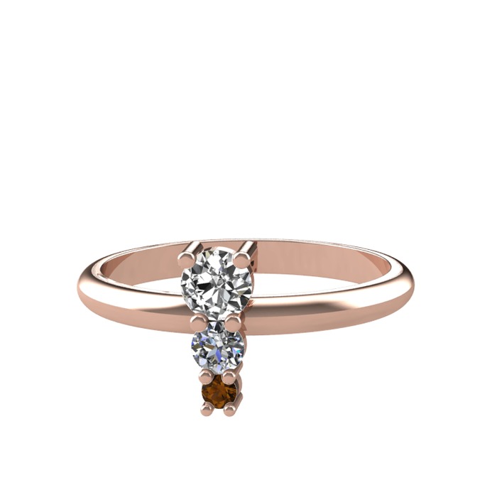 Beyaz zirkon, pırlanta ve dumanlı kuvars 18 ayar rose altın yüzük (0.11 karat)
