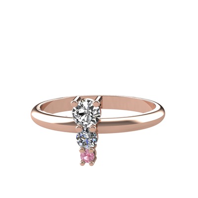 Beyaz zirkon, pırlanta ve pembe kuvars 925 ayar rose altın kaplama gümüş yüzük (0.11 karat)