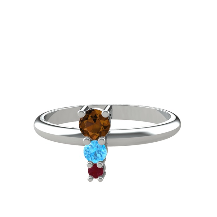 Dumanlı kuvars, akuamarin ve kök yakut 8 ayar beyaz altın yüzük