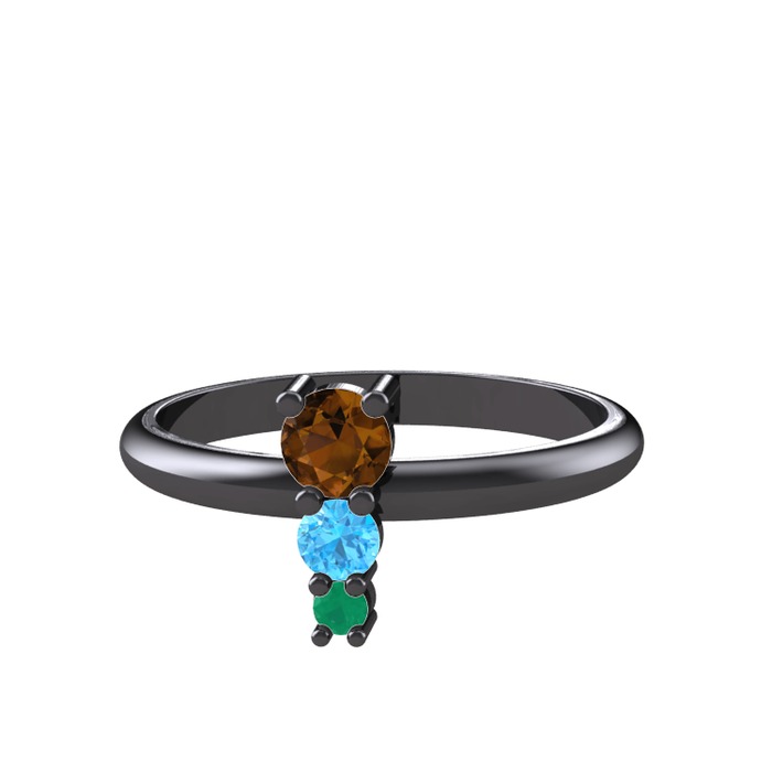 Dumanlı kuvars, akuamarin ve kök zümrüt 925 ayar siyah rodyum kaplama gümüş yüzük