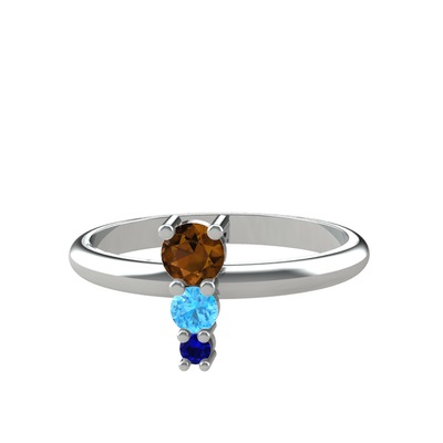 Dumanlı kuvars, akuamarin ve lab safir 925 ayar gümüş yüzük