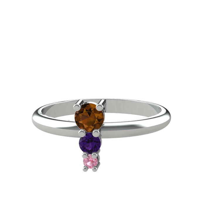 Dumanlı kuvars, ametist ve pembe kuvars 8 ayar beyaz altın yüzük