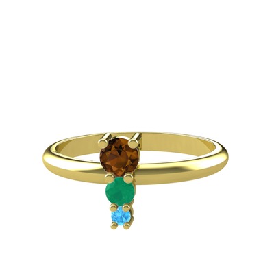 Dumanlı kuvars, kök zümrüt ve akuamarin 8 ayar altın yüzük