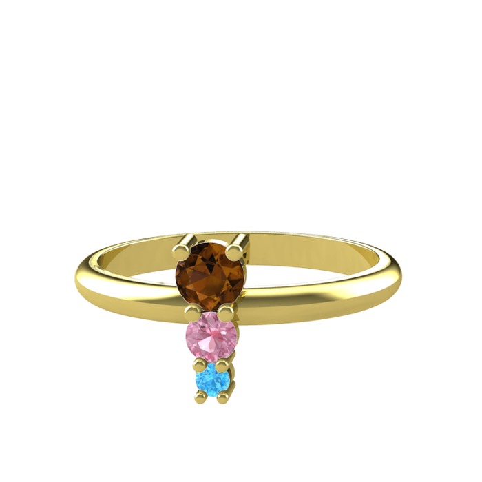 Dumanlı kuvars, pembe kuvars ve akuamarin 14 ayar altın yüzük