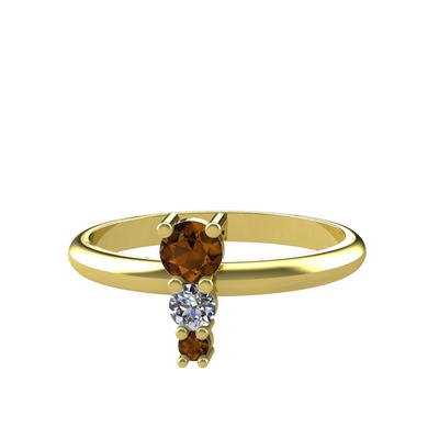 Dumanlı kuvars ve pırlanta 14 ayar altın yüzük (0.11 karat)