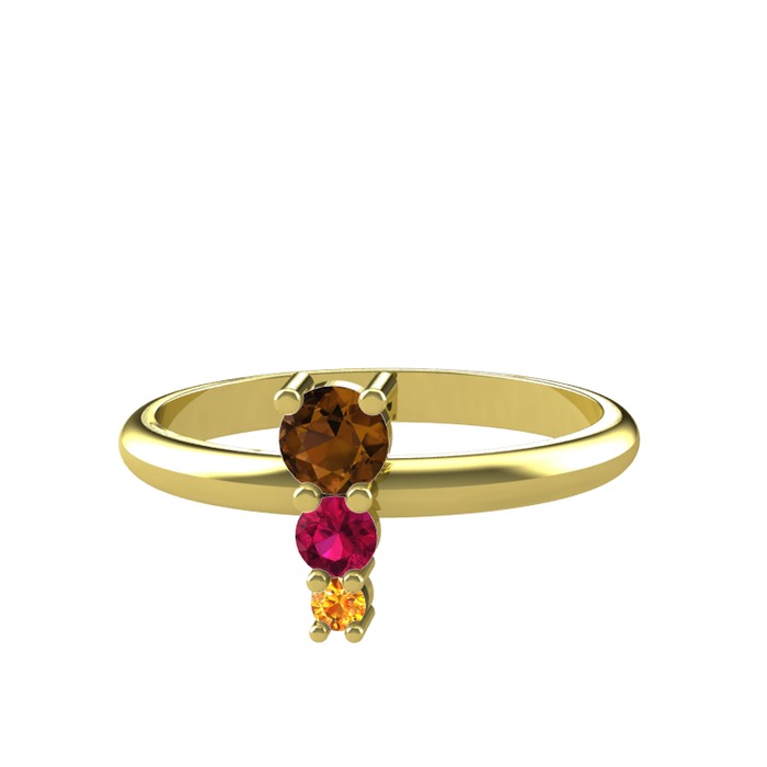 Dumanlı kuvars, rodolit garnet ve sitrin 8 ayar altın yüzük