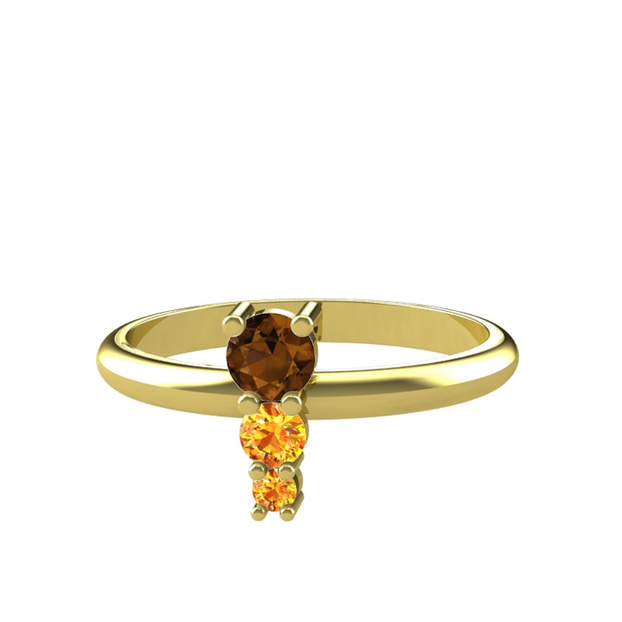 Dumanlı kuvars ve sitrin 18 ayar altın yüzük