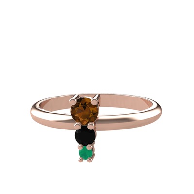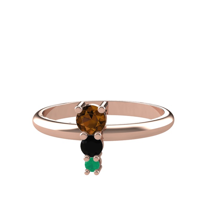 Dumanlı kuvars, siyah zirkon ve kök zümrüt 14 ayar rose altın yüzük