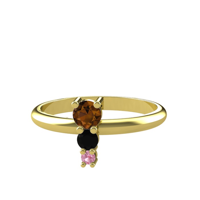 Dumanlı kuvars, siyah zirkon ve pembe kuvars 925 ayar altın kaplama gümüş yüzük