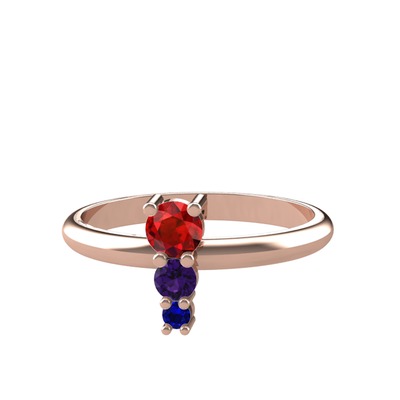 Garnet, ametist ve lab safir 8 ayar rose altın yüzük