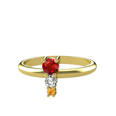 Garnet, beyaz zirkon ve sitrin 18 ayar altın yüzük