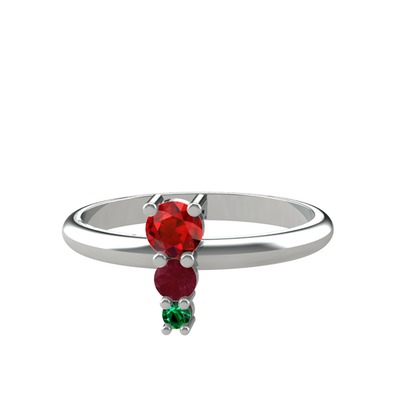Garnet, kök yakut ve yeşil kuvars 8 ayar beyaz altın yüzük