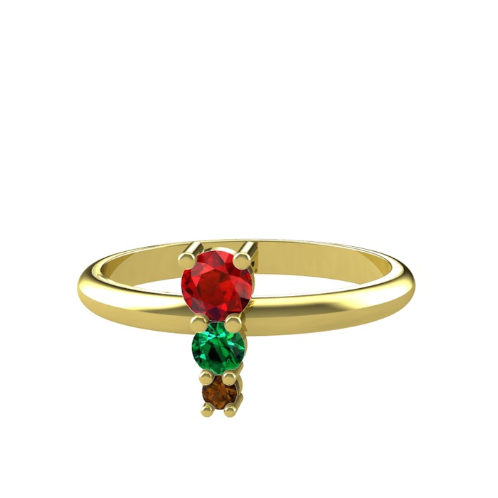 Garnet, yeşil kuvars ve dumanlı kuvars 14 ayar altın yüzük