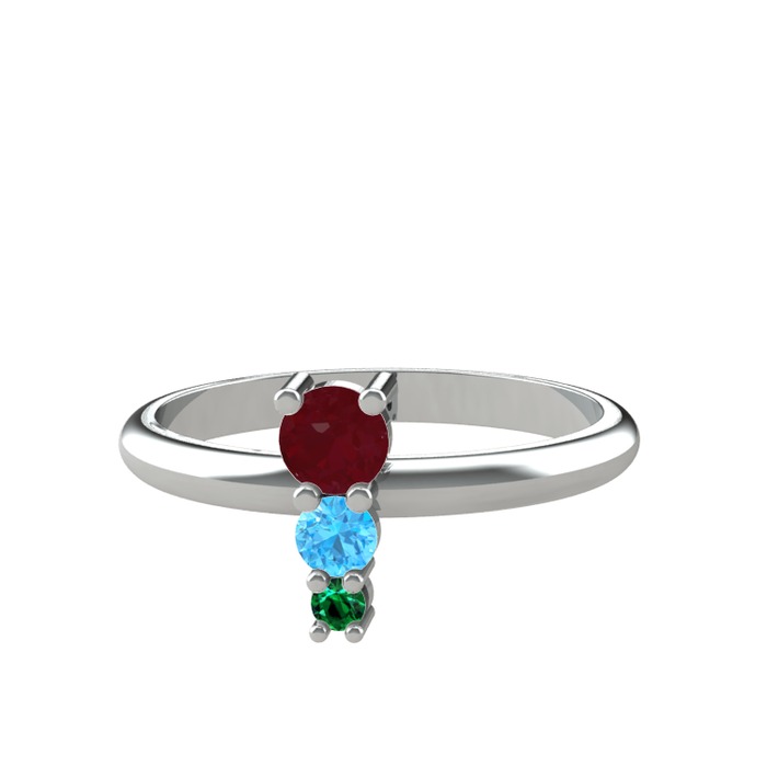 Kök yakut, akuamarin ve yeşil kuvars 14 ayar beyaz altın yüzük