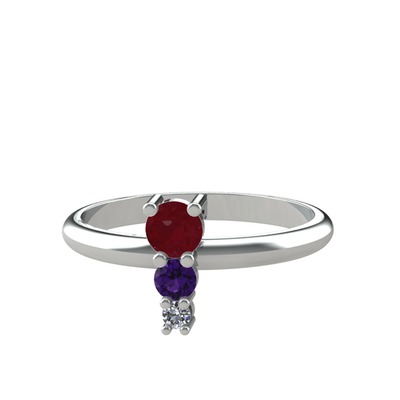 Kök yakut, ametist ve pırlanta 925 ayar gümüş yüzük (0.036 karat)