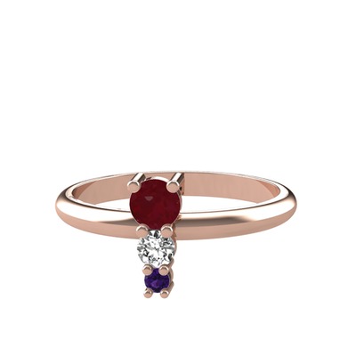 Kök yakut, beyaz zirkon ve ametist 18 ayar rose altın yüzük