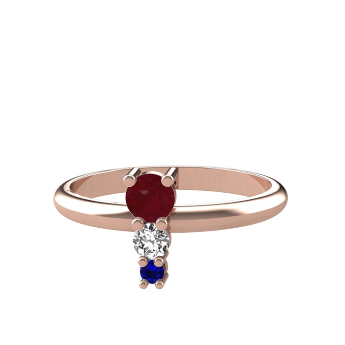 Kök yakut, beyaz zirkon ve lab safir 18 ayar rose altın yüzük