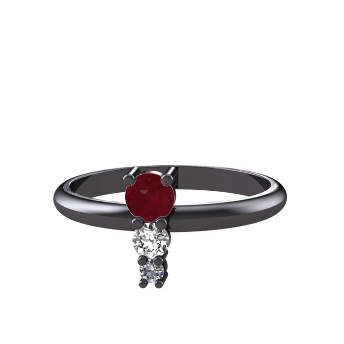Kök yakut, beyaz zirkon ve pırlanta 925 ayar siyah rodyum kaplama gümüş yüzük (0.036 karat)