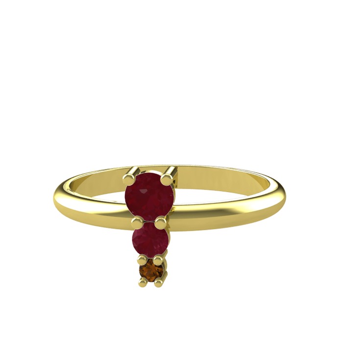 Kök yakut ve dumanlı kuvars 8 ayar altın yüzük