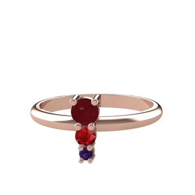 Kök yakut, garnet ve ametist 18 ayar rose altın yüzük