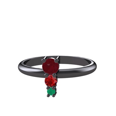 Kök yakut, garnet ve kök zümrüt 925 ayar siyah rodyum kaplama gümüş yüzük