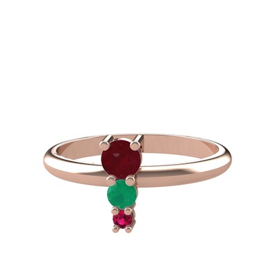 Kök yakut, kök zümrüt ve rodolit garnet 8 ayar rose altın yüzük