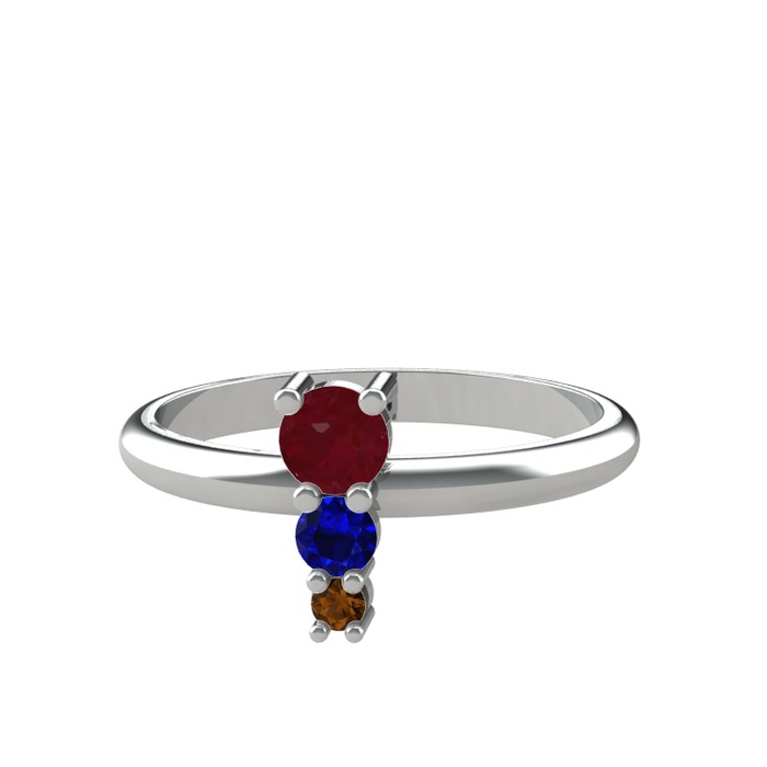 Kök yakut, lab safir ve dumanlı kuvars 14 ayar beyaz altın yüzük