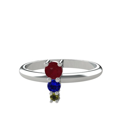 Kök yakut, lab safir ve peridot 14 ayar beyaz altın yüzük