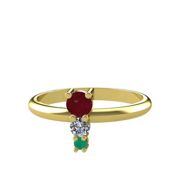 Kök yakut, pırlanta ve kök zümrüt 925 ayar altın kaplama gümüş yüzük (0.11 karat)