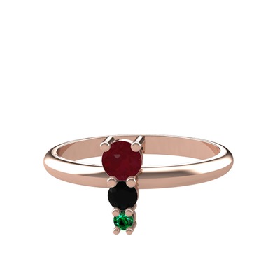 Kök yakut, siyah zirkon ve yeşil kuvars 14 ayar rose altın yüzük