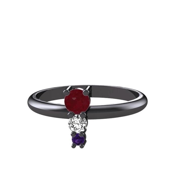 Kök yakut, swarovski ve ametist 925 ayar siyah rodyum kaplama gümüş yüzük