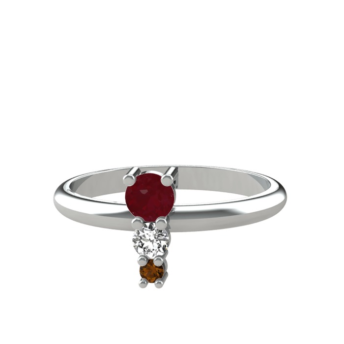 Kök yakut, swarovski ve dumanlı kuvars 18 ayar beyaz altın yüzük